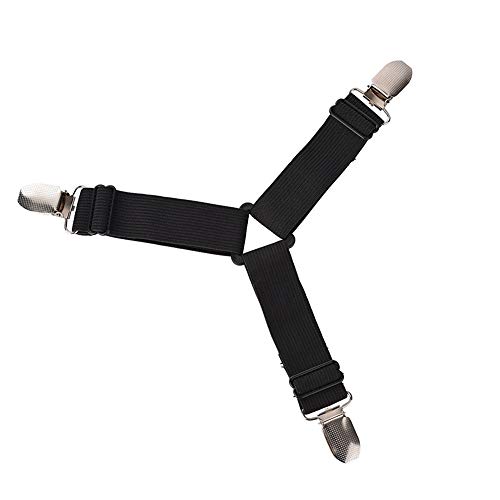 Felly Clip Lenzuola 4 Pezzi Lenzuola Bretelle Regolabili Elastici 3-Modi Triangolo Lenzuola con Pinze Clip per Angoli Lenzuola (Nero)