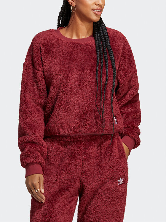 Adidas Felpa Essentials+ Fluffy Teddy Sweater HY1725 Rosso Loose Fit
