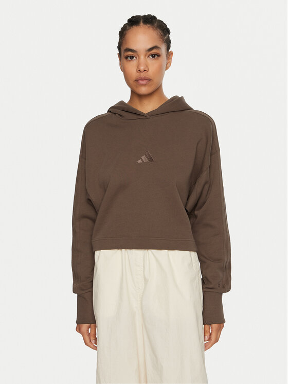 Adidas Felpa ALL SZN French Terry 3-Stripes JI9105 Marrone Regular Fit