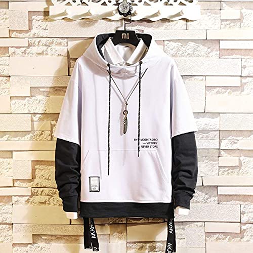 Felpa Uomo con Cappuccio Abbigliamento Felpe Manica Lunga Colori a Contrasto Hoodies Sweatshirt Pullover Tops Autunno Inverno Moda (Bianco, M)