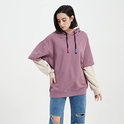 Felpa con cappuccio da uomo, alla moda, a blocchi di colore, scollo rotondo, effetto patchwork - viola - Large