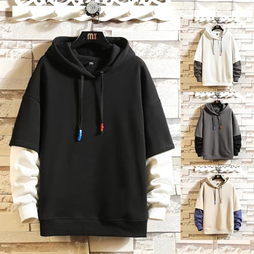 Felpa con cappuccio da uomo, alla moda, a blocchi di colore, scollo rotondo, effetto patchwork - nero - Medium