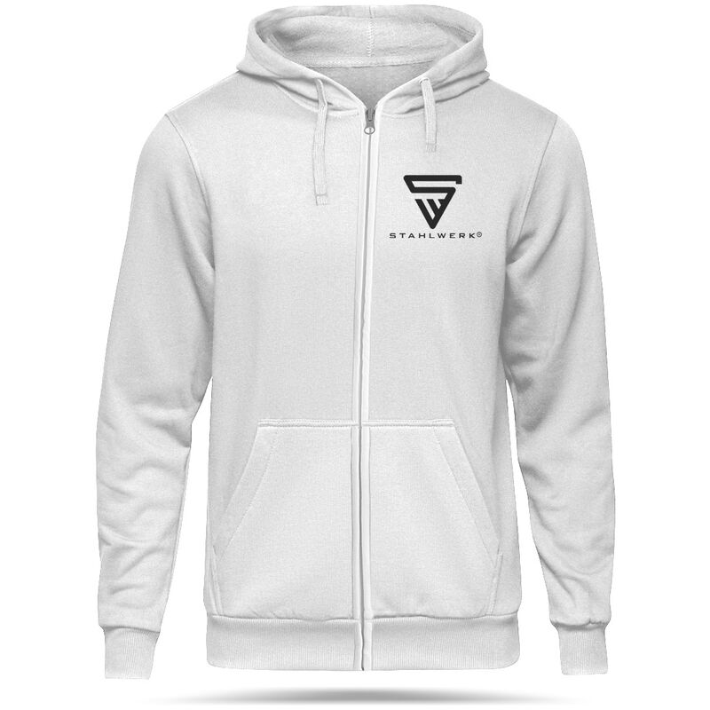 STAHLWERK felpa con cappuccio / felpa con cappuccio / giacca in felpa con zip in bianco con stampa del logo, taglia XL Felpa con cappuccio / felpa con cappuccio con zip di alta qualità. La felpa con cappuccio STAHLWERK colpisce per il suo design elegante con stampa del logo e per la sua eccellente lavorazione. Il resistente tessuto in misto cotone, il morbido materiale interno e le robuste cuciture garantiscono un elevato livello di comfort. La felpa con cappuccio e zip è dotata di due pratiche tasche a pressione e di una zip a tutta lunghezza. Una coulisse permette di regolare individualmente il cappuccio del pullover. Il taglio moderno con elastico in vita e sui polsini delle maniche conferisce alla felpa una vestibilità perfetta. Caratteristiche Design elegante con stampa del logo e lavorazione eccellente. Il resistente tessuto in misto cotone, il morbido materiale interno e le robuste cuciture assicurano un elevato comfort. La felpa con cappuccio e zip è dotata di due pratiche