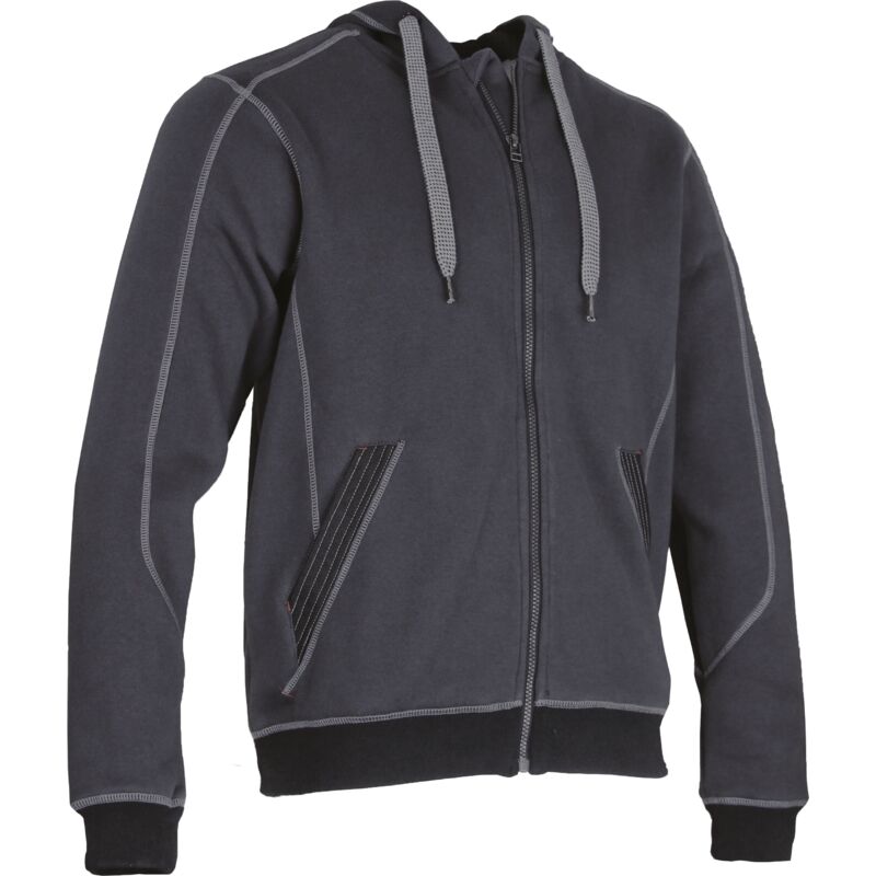 Dettagli: Il tessuto utilizzato per realizzare questa felpa è 80% cotone e 20% poliestere con un peso di 320 g/m². L'interno ha un aspetto spazzolato. Quando si tratta di comfort, la felpa offre un ottimo risultato. Innanzitutto, è dotata di un cappuccio foderato a contrasto e di coulisse bicolore con punta in metallo per regolare il colletto. La vita e le maniche sono foderate in elastan per il massimo isolamento dal freddo. La zip grigia è iniettata e le cuciture sono flatlock. Sul ventre sono presenti 2 tasche oblique. Queste sono rinforzate con Oxford. Anche le toppe sui gomiti sono rinforzate con Oxford 900D impermeabile. Caratteristiche: Con cappuccio: Sì Con cerniera: Sì Dettagli materiale: 80% cotone, 20% poliestere Genere: Uomo Grammatura: 320 g/m² Alta visibilità Alta visibilità: No Lavaggio industriale EN 15797: No Materiale: Cotone / Poliestere Stretch: Sì Tipo di capo: Felpa Grigio scuro