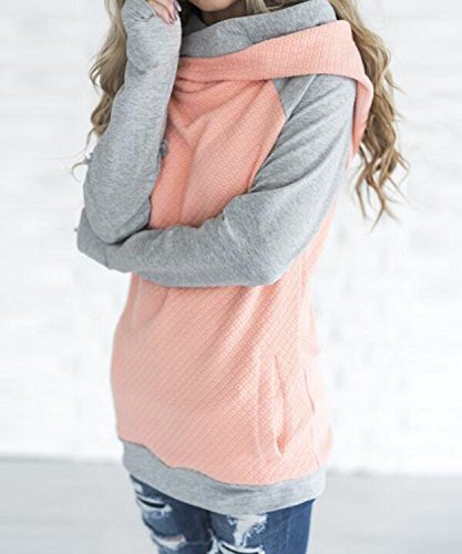 DEMO Felpa con Cappuccio da Donna Felpa Casual con Collo Alto e Patchwork con Cappuccio(Rosa,M)