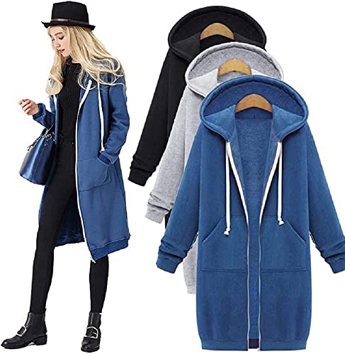 Felpa con Cappuccio da Donna con Zip Intera Manica Lunga Felpa Lunga Casual Giacca con Cappuccio in Tinta Unita Felpa con Cappuccio Lunga Felpa con Zip Casual Giacca in Pile (Grigio Scuro,XL)