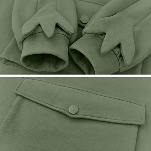 Felpa con cappuccio da donna con cappuccio oversize spesso casual allentata con cerniera con tasca, Verde militare, M