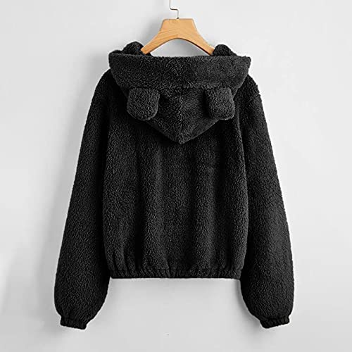 IQYU Felpa con cappuccio da donna, in pile Teddy, da donna, con orecchie, in morbido pile, a maniche lunghe, con cappuccio, Zz-nero., XXL