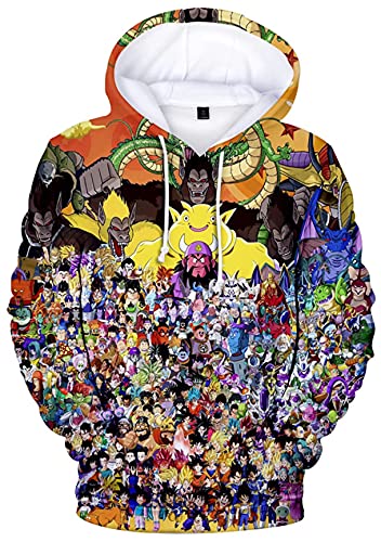 Felpe con cappuccio dai colori vivaci con 3D Dragon Ball Z! Coulisse regolabile, maniche lunghe, girocollo, orlo e polsini a costine, felpa con cappuccio dalla vestibilità comoda la rende calda e comoda da indossare.