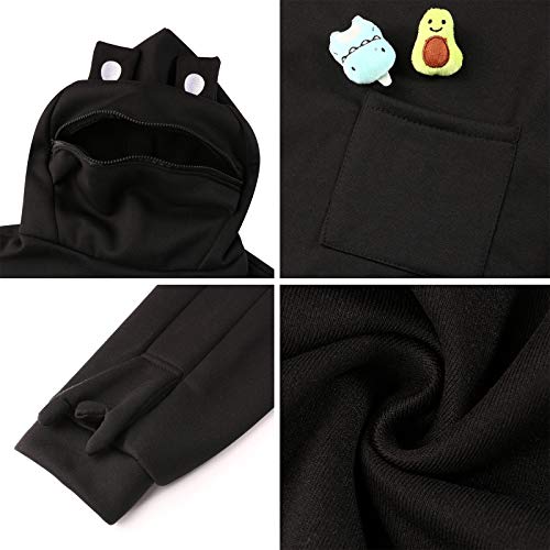Felpa con cappuccio a forma di rana per San Valentino, con zip e stampa a forma di animale Kawaii Nero XXL