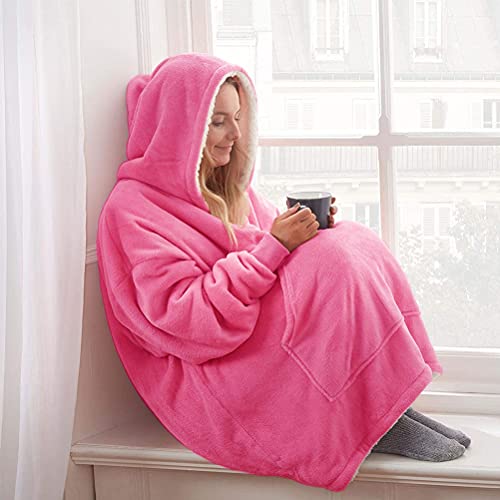 Felpa con cappuccio oversize Felpa con cappuccio coperta super morbida calda e confortevole, taglia unica per tutti gli uomini, donne e ragazze, ragazzi, Rosa, Taglia unica