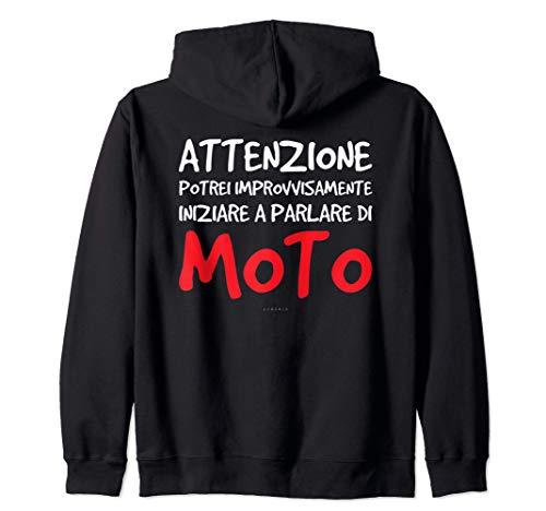 Design Felpa: Attenzione potrei improvvisamente iniziare a parlare di moto. Felpe con cappuccio e cerniera sulle moto con scritte divertenti e frasi originali, ironiche e simpatiche per i motociclisti. Felpe per uomo e ragazzo.