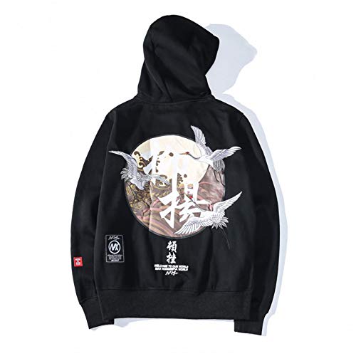Felpa con Cappuccio Felpa con Cappuccio Ricamo Gru Giapponesi Pullover Felpe con Cappuccio Uomo Inverno Hip Hop Uomo Casual Felpe con Cappuccio Streetwear