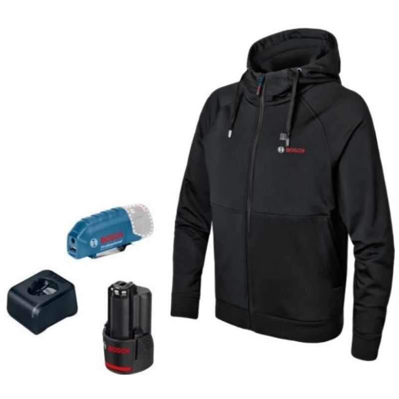 Abiti riscaldati GHH 12 + 18 V XA La felpa con cappuccio riscaldata GHH 12 + 18 V XA è l'opzione perfetta midlayer contro temperature fredde e maltempo. Combinato con una giacca sottile, vento e idrorepellente, è tutto ciò di cui hai bisogno per stare al caldo ad ogni lavoro. Il tempo è sempre imprevedibile, ma con la perfetta distribuzione del calore grazie alle sue tre zone di riscaldamento, questa felpa con cappuccio mantiene il corpo superiore caldo tutto il giorno. I tre livelli di riscaldamento, forniti tramite le batterie da 12 volt di Bosch, garantiscono calore permanente. La porta integrata nell'adattatore della batteria consente facilmente caricamento dei dispositivi Powered USB di caricamento e offre quindi ancora più comfort. La fornitura delle pastiglie di riscaldamento con cappuccio avviene tramite l'adattatore di ricarica GAA 12V-21 e una batteria da 12 Volt da Bosch (inclusa) o facoltativamente tramite l'adattatore di ricarica GAA 18V-24 e la batteria da 18 V di Bosch