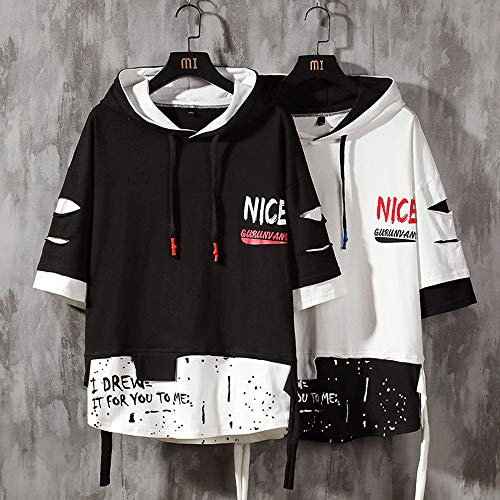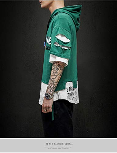 Felpa con cappuccio, stile hip hop alla moda, effetto patchwork, da uomo, Mezza manica verde, XL/3XL