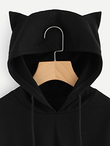 Felpa con Cappuccio,Topgrowth Donna Orecchio di Gatto Pullover Manica Lunga Nero Maglietta Crop Top (Nero, XXL)