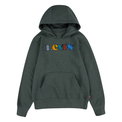 Bella felpa con cappuccio verde scuro di Levi's® con grande logo multicolore print sul petto. Il materiale meravigliosamente morbido offre al tuo tesoro una sensazione confortevole. Dettagli del prodotto: Materiale: 60% cotone, 40% poliestere Lavabile fino a 30 °C Tabella delle taglie
