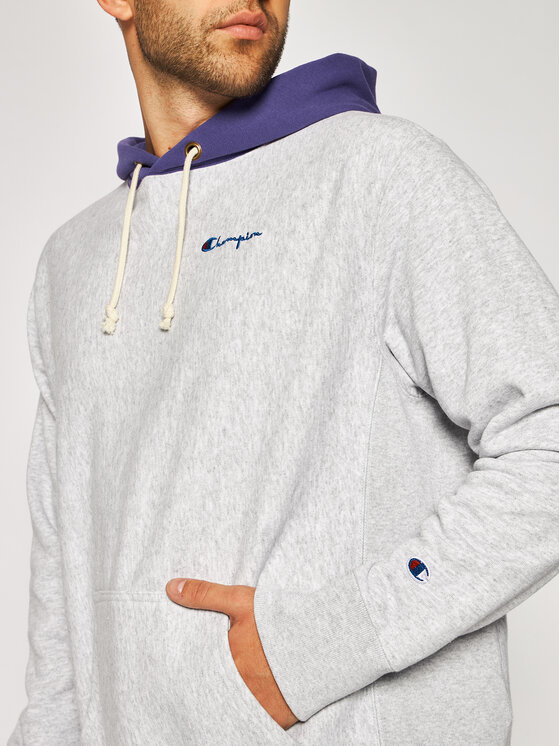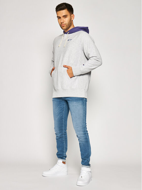 Felpa Contrast Hood Reverse Weave Hoodie 215164 Grigio Regular Fit