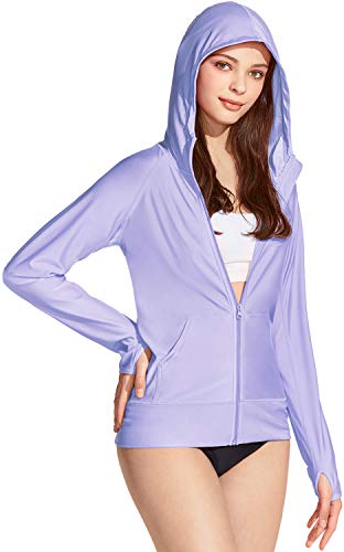 TSLA Felpa da donna con cappuccio e cerniera frontale Rash Guard, UPF 50+, a maniche lunghe, protezione UV/SPF, Donna, Fsz02, confezione da 1 - Lavender, M