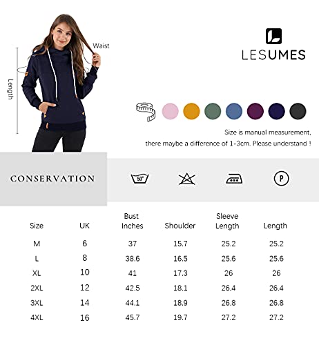 Les umes - Felpa da donna con cappuccio e collo alto, in pile caldo, a maniche lunghe, con coulisse