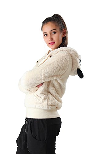 Felpa Donna con Cappuccio Orecchie Orso Panda Pelliccia Animal Zip Giacca Kawaii S35 (L, Beige)