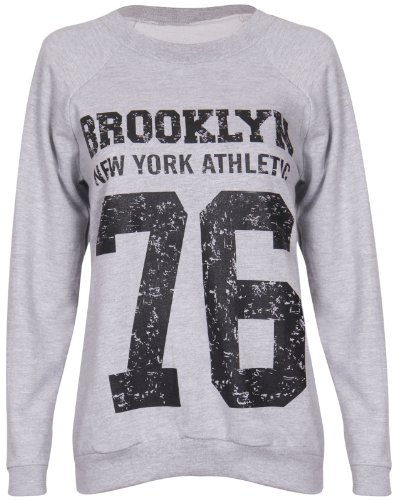 Felpa da donna con girocollo, manica lunga raglan con scritta in lingua inglese "Brooklyn New York Athletic 76" Light Grey 42
