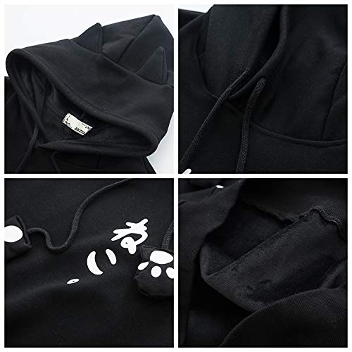 Felpa da donna Kawaii Cute Cat a maniche lunghe con cappuccio, bianco, M