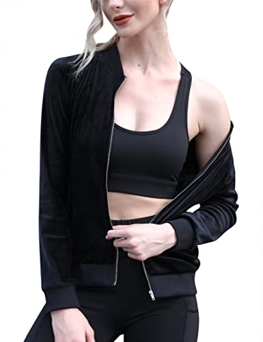 NB Felpa con Zip Donna in Velluto Sweatshirt a Maniche Lunghe Giacca Sportiva con Tasche Hoodie con Cerniera per Autunno Inverno Nero XXL
