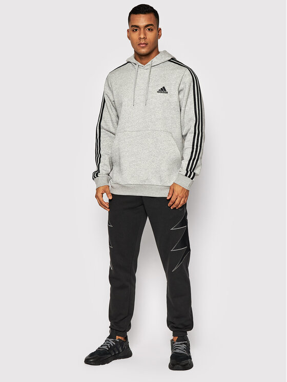 Felpa Essentials Fleece 3-Stripes GK9084 Grigio Regular Fit