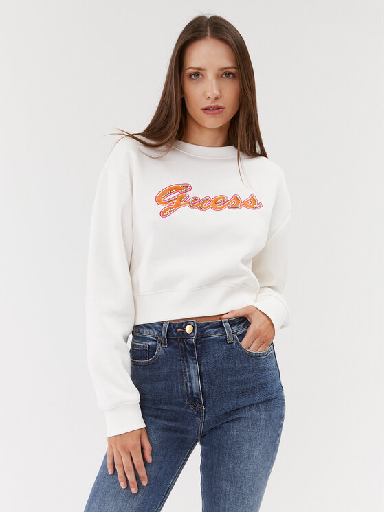 Guess Felpa Velvet Logo W3BQ13 KB681 Bianco Regular Fit