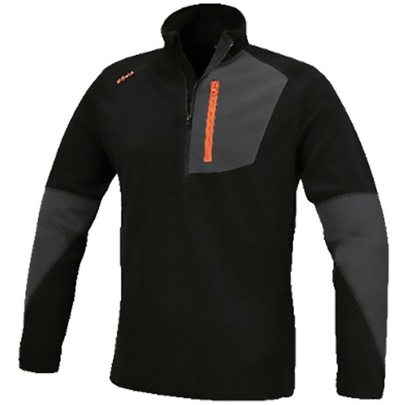 In 95% poliestere, 5% spandex, 180 gr. polsini elasticizzati, tasca al petto con chiusura zip verticale, inserti in poliestere su tasca petto e maniche. colore nero.xl