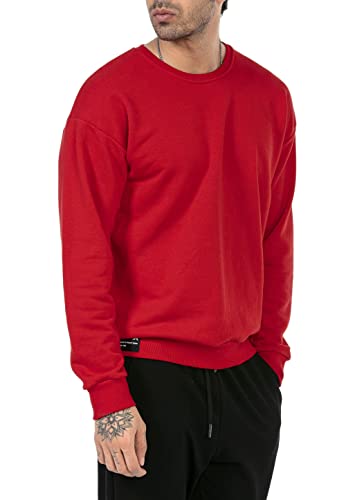 Felpa da Uomo Maglia in Cotone Manica Lunga Premium Basic Real Oversize Rosso M