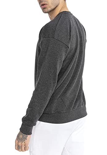 Felpa da Uomo Maglia in Cotone Manica Lunga Premium Basic Real Oversize Grigio Scuro XL