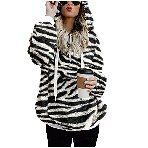 Riou Felpa Peluche con Half Zip da Donna: Hoodie in Pile a Maniche Lunghe Morbido Caldo Taglie Forti Casual Giacca Sweatshirt Stampa Mimetica Zebrata Stampa Leopardo