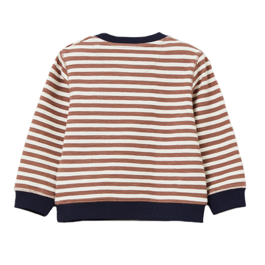 Dettagli del prodotto: Felpa in cotone stretch Girocollo Bottoni a pressione sulla scollatura Tasca sul davanti Sticker sul petto A righe Materiale e istruzioni per la cura: Materiale: 68% cotone, 29% poliestere, 3% poliestere Certificato secondo Oeko-Tex Standard 100 Lavabile fino a 40 °C Adatto all'asciugatrice Non candeggiare OVS - uno dei marchi leader della moda italiana, con la sua collezione KIDS è sinonimo di outfit attenti alla moda con il massimo comfort di vestibilità. La selezione dei materiali è caratterizzata dalla massima cura e combina stile e praticità. Allo stesso tempo, OVS è sempre più impegnata nella produzione sostenibile e nell'uso di materie prime ecologiche.