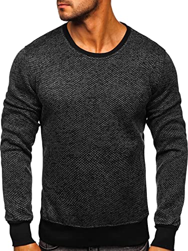 BOLF Uomo Felpa Senza Cappuccio Maglia Manica Lunga Tempo Libero Sport Fitness Outdoor Basic Casual Style 2001-3 Grafite XXL [1A1]