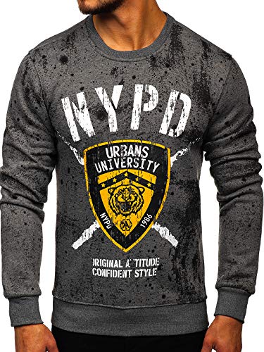 BOLF Uomo Felpa Senza Cappuccio con Stampa Maglia Manica Lunga Tempo Libero Sport Fitness Outdoor Basic Casual Style DD261 Grafite M [1A1]