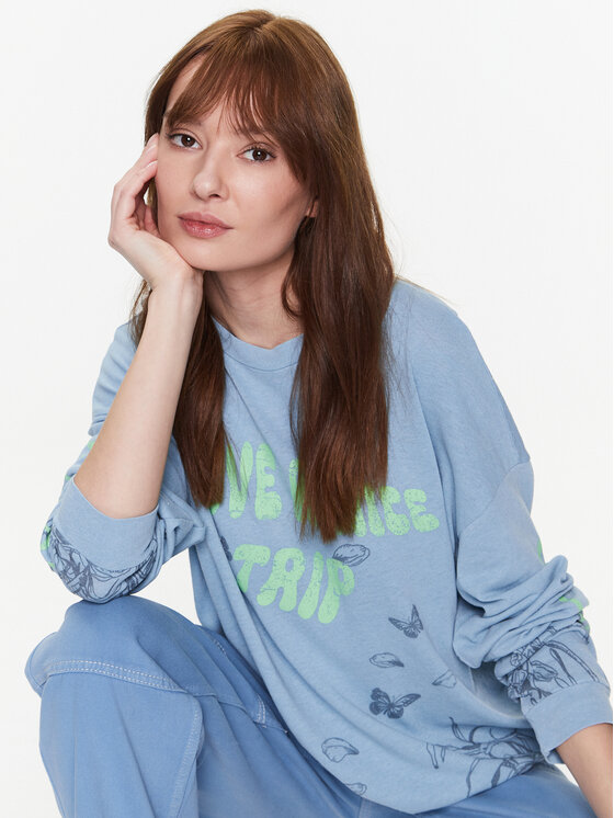 Felpa BDG NICE TRIP SKATE LS 76471457 Blu Oversize