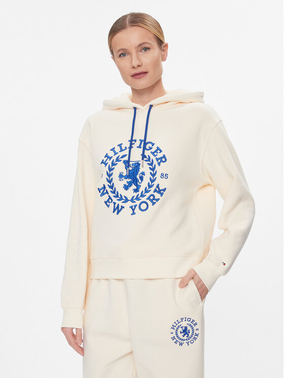 Tommy Hilfiger Felpa Reg Crest Hoodie WW0WW40577 Écru Regular Fit