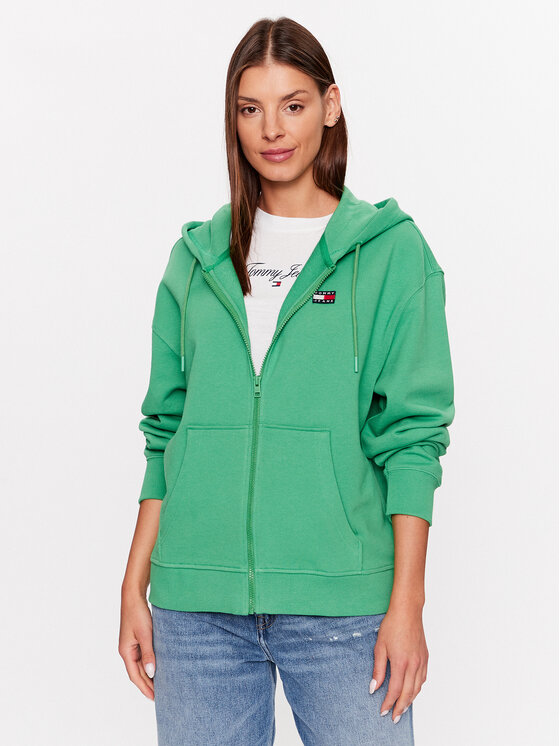 Tommy Jeans Felpa Badge DW0DW15748 Verde Relaxed Fit