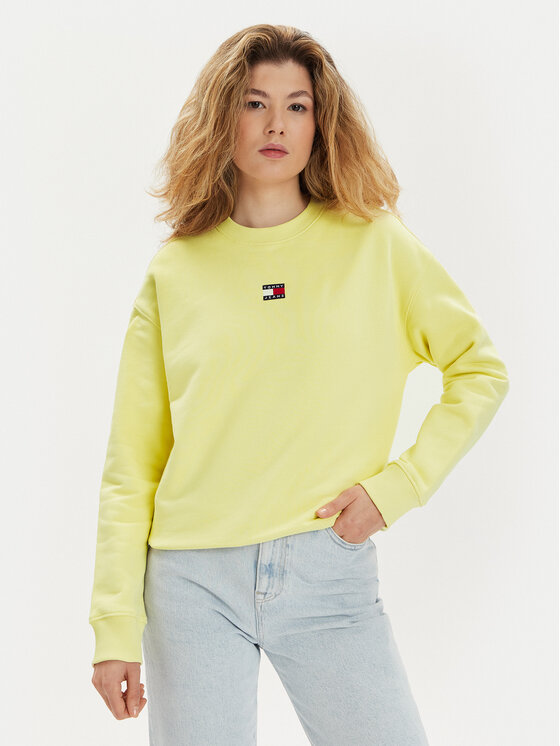 Tommy Jeans Felpa Badge DW0DW17325 Giallo Regular Fit