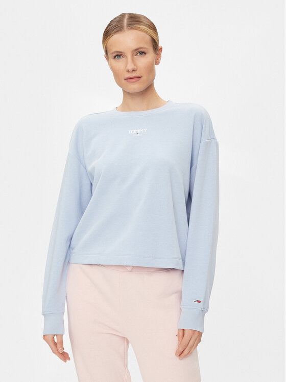 Tommy Jeans Felpa Ess Logo DW0DW16393 Celeste Cropped Fit