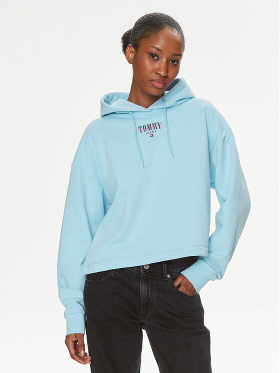 Tommy Jeans Felpa Essential Logo DW0DW17797 Celeste Relaxed Fit