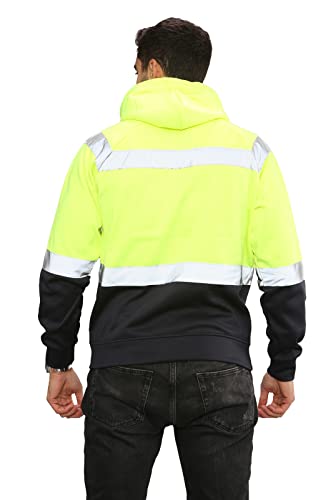 Felpa da uomo Hi Viz Vis Visibility con 4 cerniere e 5 zip con cerniera in pile, Felpa con cappuccio con cerniera 5 Zips Giallo, XXL