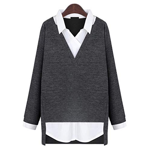 Felpe da Donna Top Con Collo A Media Lunghezza In Finta Camicia A Due Pezzi Con Risvolto Pullover Camicetta,Pwtchenty