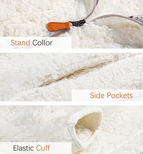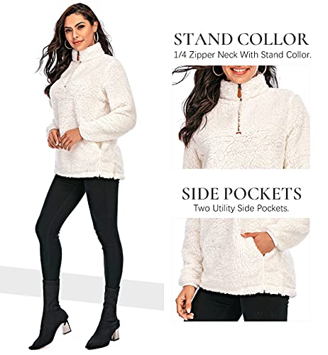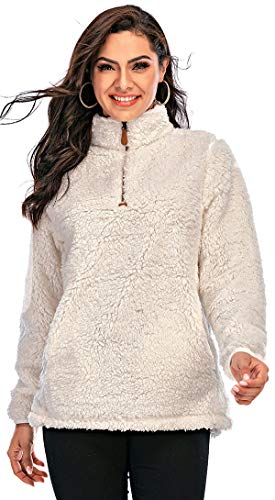 Les umes Felpe da donna in pile fuzzy con mezza cerniera e soffici sherpa, con tasche, A-Bianco, XX-Large