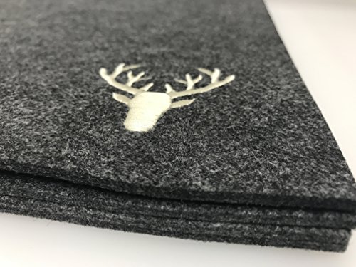Feltro piazza Set "Cervo, rettangolare in grigio scuro con beigem testa di cervo ricamato come Set di pezzi da CH Trading