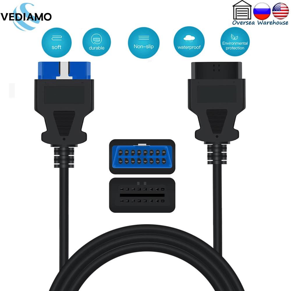 1.5m Male to Female Full 16Pin OBD2 Connector Car Diagnostic Adapter for Ford BMW Mercedes VW OBDII Extension Cable