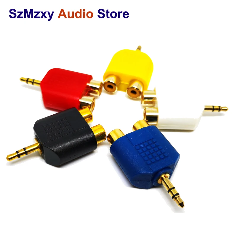 1PCS 3.5mm plug to 2 RCA jack male to female 3.5 to AV Audio Connector 2 in 1 Stereo Headset Dual Headphone Audio Adapter