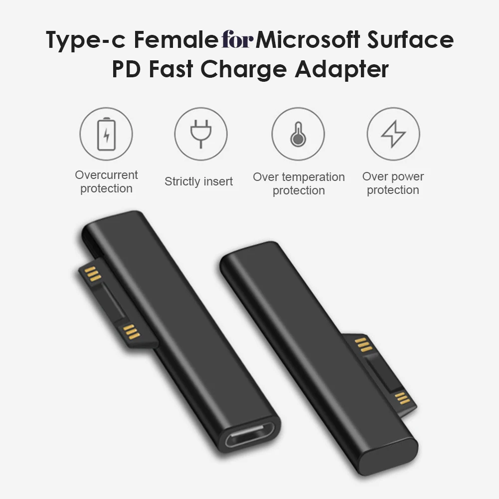 Type C Female PD Fast Charging Plug Converter for Surface Pro 3 4 5 6 Go Connector for USB C Female Adapter for Surface Book